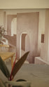 Let your walls do the talking with the beige Corbero wallpaper. A powerful, three-dimensional design with an Art Deco touch. The pastel-colored stairs create a more spacious feel in every home.