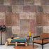 The industrial-look Penthouse wallpaper features alternating copper panels with metal details; the ideal wallpaper for transforming your office into a trendy workspace or creating the ultimate loft vibe in your living room.