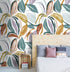 Brighten up your room with the Colored Leaves wallpaper. The colorful, botanical leaves create a wild spectacle on your wall. Combine this wallpaper with a large banana plant and bohemian furniture to create a tropical paradise.